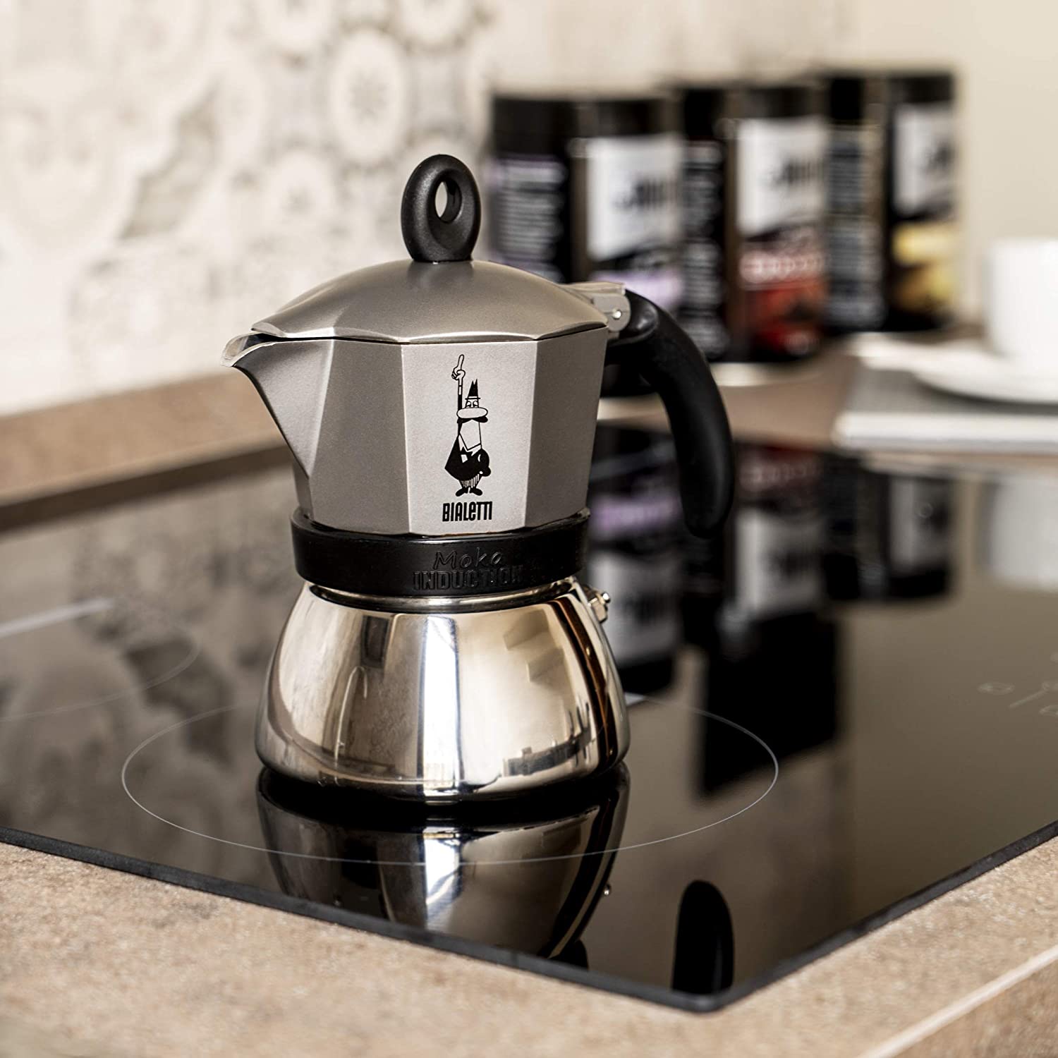 Практичная гейзерная кофеварка на 3 чашки для индукционных плит от итальянской компании Bialetti. Объем 120 мл.