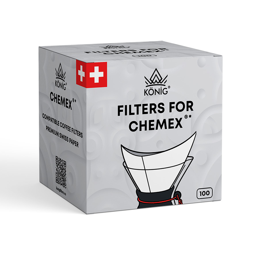 Беленые бумажные фильтры Konig для Кемекса из швейцарской бумаги премиального качества с превосходными характеристиками от турецкой компании Konig. Подходят для всех кофеварок Chemex СM-6A, CM-6GH, СM-8A, CM-8GH, CM-10GH, СM-10A (шесть, восемь, десять чашек). Обеспечивают оптимальное распределение кофе и восхитительный аромат напитка. В упаковке 100 шт.